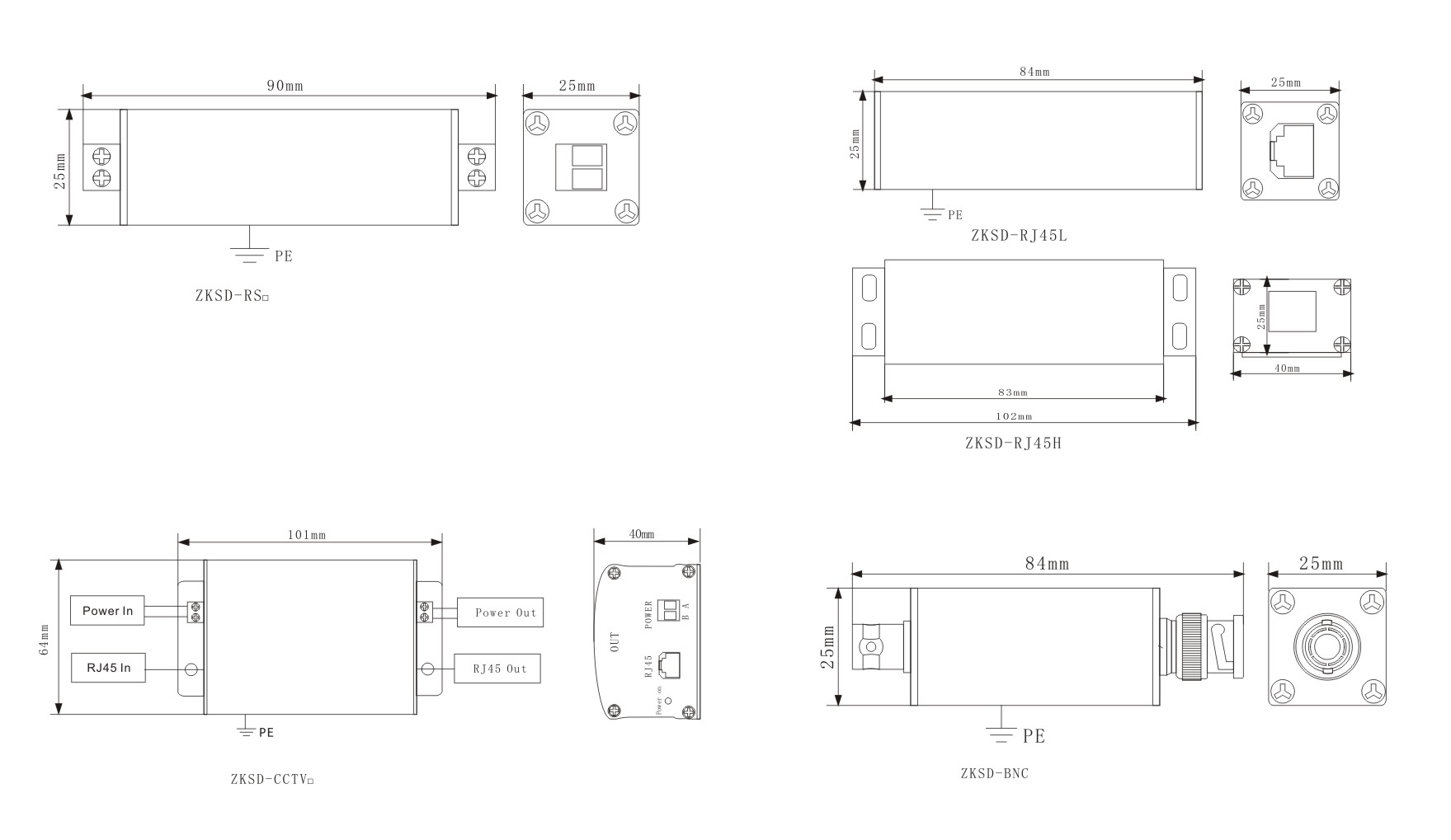 ZKSD-RS信號電涌保護器適用于通訊專線、遙測信號、遙控信號等信號設備的電涌保護。保護類型:標準接線柱式接口(ZKSD-RS)、RJ45接口(ZKSD-RJ45)、BNC 頭同軸接口(ZKSD-BNC)、監控+電源二合一(ZKSD-CCTV)。